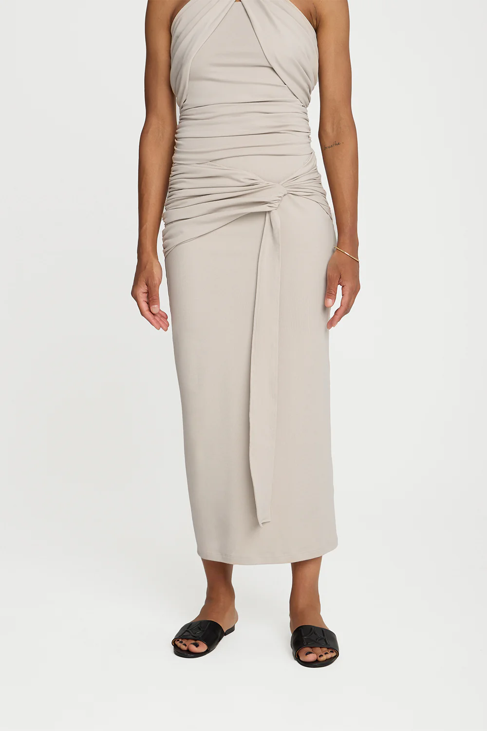Beżowa spódnica midi z wiązaniem Miss Bali Sand