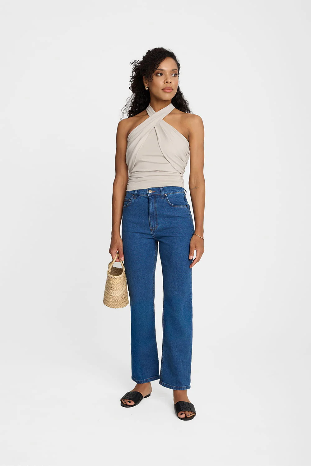 Jeśli szukasz wygodnego, letniego topu o kobiecym charakterze, beżowy top z wiązaniem będzie strzałem w dziesiątkę! Wykonany z miękkiej bawełny z domieszką elastanu, doskonale dopasowuje się do sylwetki, jednocześnie zapewniając swobodę ruchu. Piaskowy odcień pięknie komponuje się z wakacyjną opalenizną, a wiązanie na szyi dodaje całości zmysłowego charakteru.Beżowy wiązany top wyróżnia się nietuzinkowym krojem – z boków wychodzą szerokie szarfy, które krzyżują się na dekolcie i są wiązane na karku. To nie tylko ciekawe wizualnie, ale też praktycznie rozwiązanie, które pozwala na indywidualne dopasowanie długości i wysokości dekoltu. Drapowany supeł na środku pełni funkcję ozdobnego akcentu, tył topu pozostaje zaś odkryty, z elastycznym pasem, który zapewnia doskonałe dopasowanie do sylwetki. Beżowy top wiązany na szyi sprawdzi się zarówno na wieczorne wyjście, jak i jako element dziennej stylizacji. Świetnie prezentuje się w komplecie ze spódnicą z tej samej dzianiny, tworząc spójną i niezwykle efektowną całość – niemal jak sukienka, ale w bardziej nowoczesnym wydaniu.