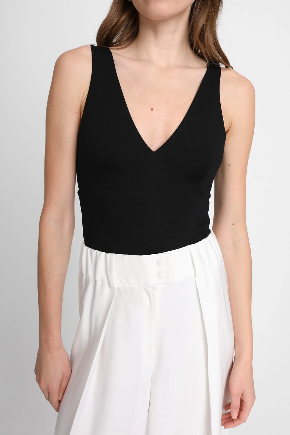 Jeśli lubisz kobiece ubrania podkreślające sylwetkę, mamy coś w sam raz dla Ciebie! Miss Seductive to czarne body z głębokim dekoltem V, który pięknie podkreśla dekolt. Co ważne, model ten posiada wyjmowane miseczki w biuście. Dzięki nim nie musisz zakładać pod spód biustonosza – miseczki sprawią, że biust będzie ładnie się układał, zapobiegną również prześwitywaniu. Jeśli będziesz wolała nosić czarne body damskie z głębokim dekoltem V bez miseczek, wyjmiesz je bez problemu – zalecamy również robienie tego przed praniem. Miss Seductive szyjemy z podwójnej warstwy przyjemnego w kontakcie ze skórą modalu z domieszką elastanu. Szerokie ramiączka dobrze trzymają biust, a dekolt typu V z tyłu pięknie eksponuje plecy. Czarne body na szerokich ramiączkach z głębokim dekoltem jest zapinane na napy – 2-stopniowa regulacja pozwala na jego optymalne dopasowanie. Część majteczkowa body jest mocniej wycięta, dzięki czemu nie będzie odznaczać się pod ubraniem. Miss Seductive stworzy dobraną parę z i szpilkami, jak również ze i botkami za kostkę. Która wersja bardziej do Ciebie przemawia?