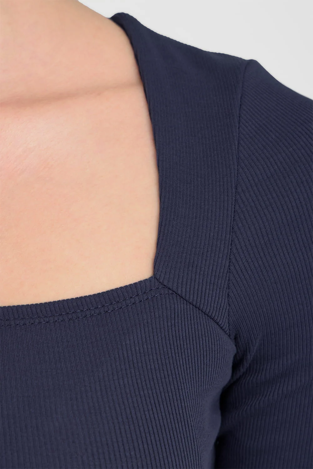 Granatowa prążkowana koszulka z dekoltem karo Miss Caro Navy