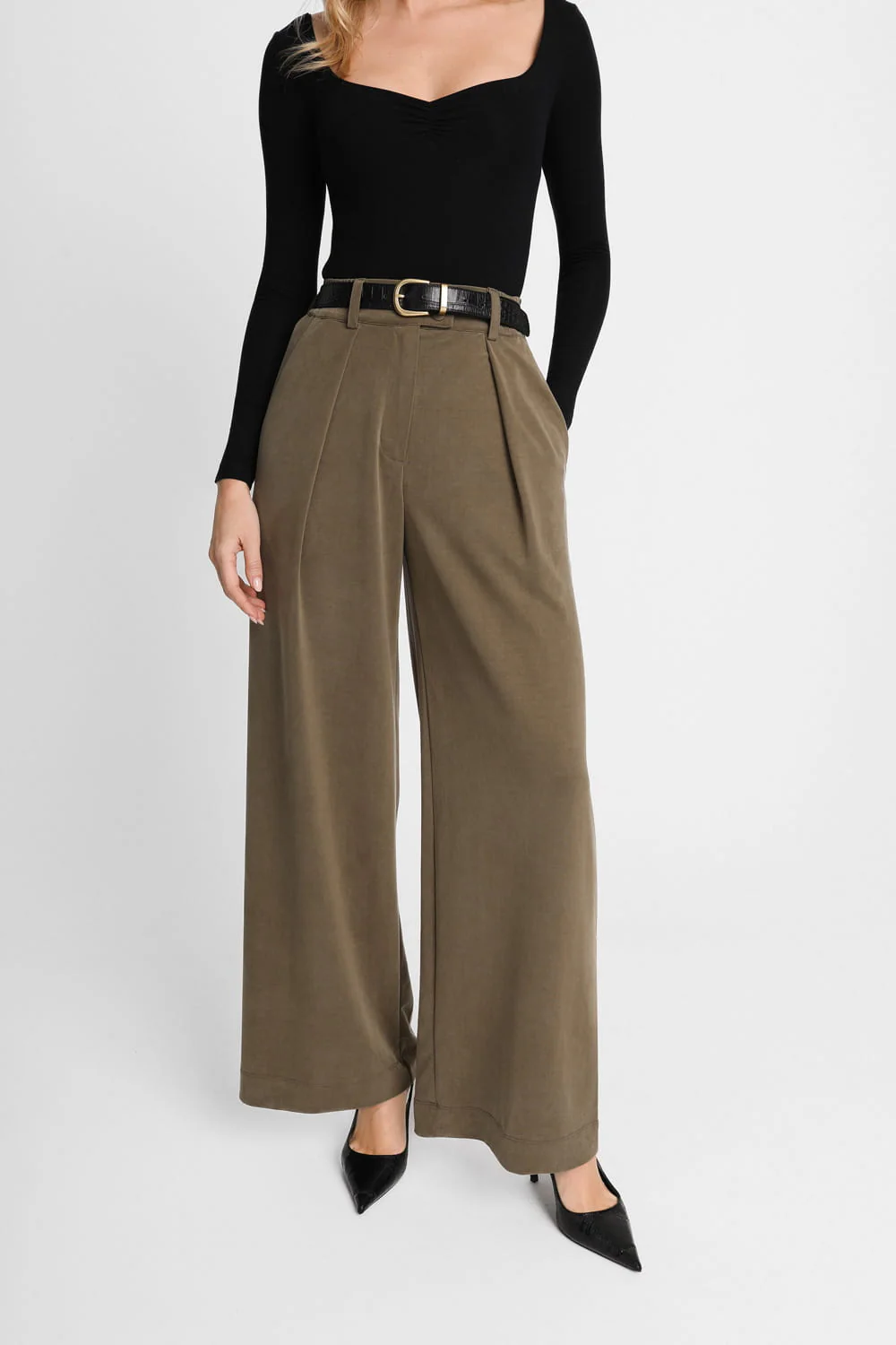 Oliwkowe spodnie wide leg damskie Miss Daily Olive